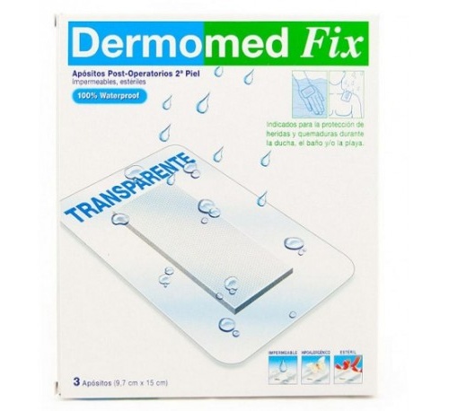 El apósito DERMOMED FIX SEGUNDA PIEL está diseñado para proteger especialmente la herida durante la ducha, el baño y/o la playa. Su soporte fino, elástico y transparente es impermeable y muy resistente. Este producto cuenta con un adhesivo hipoalergénico que no deja residuos al retirarlo, lo que garantiza una mayor comodidad. Además, ofrece una gran capacidad de absorción y una capa superficial anti-adherente que favorece la curación. Este apósito está marcado con el CE, ON: 0051, y es de Clase I, estéril.